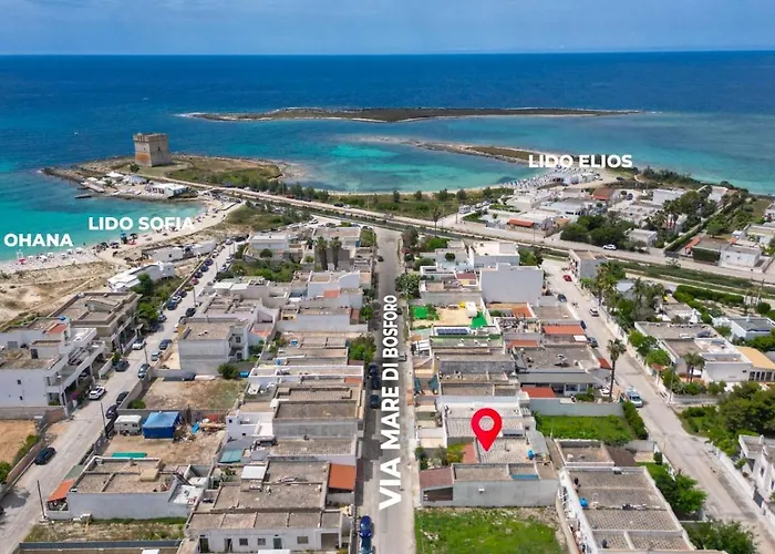 This accommodation is situated 550 m from the Lido Tabu and 2.6 km from business venues like the Torre Cesarea. The sand Spiaggia di Torre Lapillo Beach is nestled approximately 10 minutes' drive from the holiday home, and the Statue of Manuela Arcuri is around 15 minutes away by car. The beachfront Casa Margherita also offers easy access to the Torre Chianca, located merely 500 metres away.